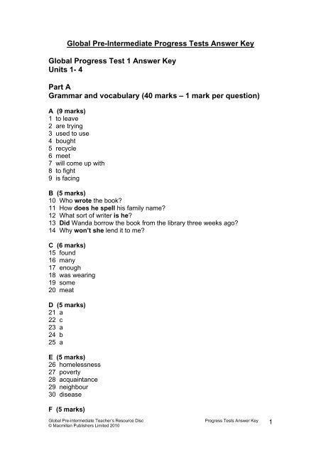 VFD - Read Online GLOBAL ANSWERS KEY PROGRESS TESTS B INTERMEDIATE PDF Google eBookstore